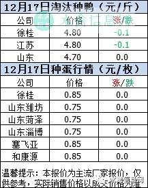 12月份,父母代种鸭报价1600元/单元。较上月涨300元
