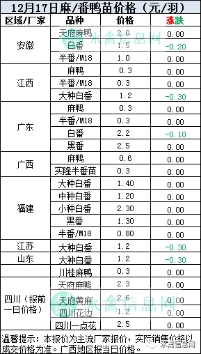 近两日鸭苗市场波动较大,各区域价格混乱,简易朋友们根据当地具体情况注意询价。