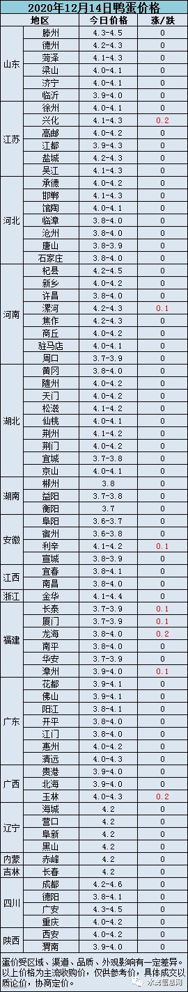 2020年12月14日淘汰蛋鸭价格参考值:活禽6.5-7.0元/斤、屠宰5.0-6.0元/斤。受肉鸭活禽价格下跌影响叠加淘鸭增多种鸭淘汰乱市,淘汰蛋鸭持续弱势震荡,走货较慢。