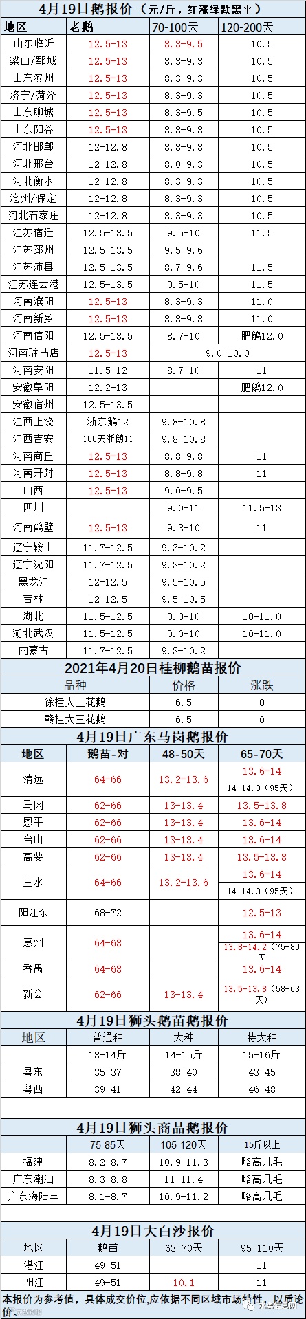 2021年4月19日商品鹅蛋价格(元/斤)
