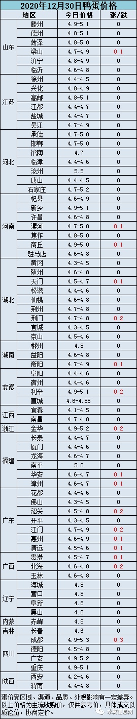 【鸭蛋价格】2020年12月30日鸭蛋报价:供应紧张,蹿红上涨。 益牧堂水禽信息