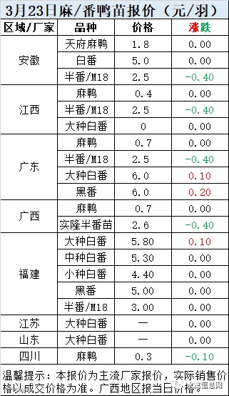 一、3月23日白羽鸭苗报价