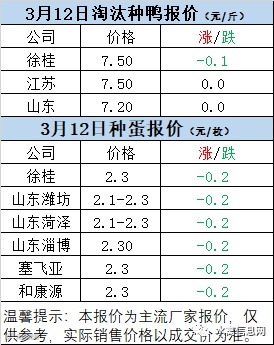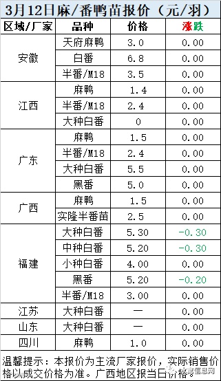 一、3月11日晚至3月12日 白羽肉鸭报价