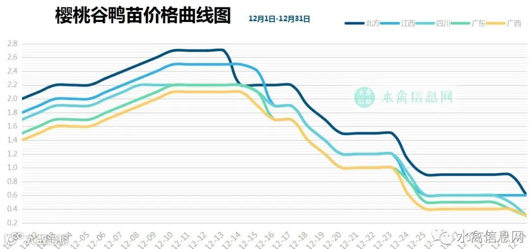 当前苗价已属低谷,况且孵化已大幅压缩产量,过度限价已无意义。北方大鸭合同基本停放,小白条厂持续亏损,虽鸭苗低价,补栏积极性仍然不高。北方实际成交较少,报价代表性不大。南方市场为当前投苗主力。