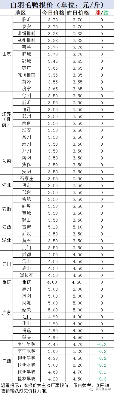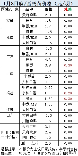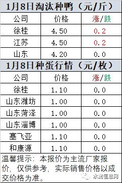 一、2021年1月7日晚至1月8日 白羽肉鸭报价