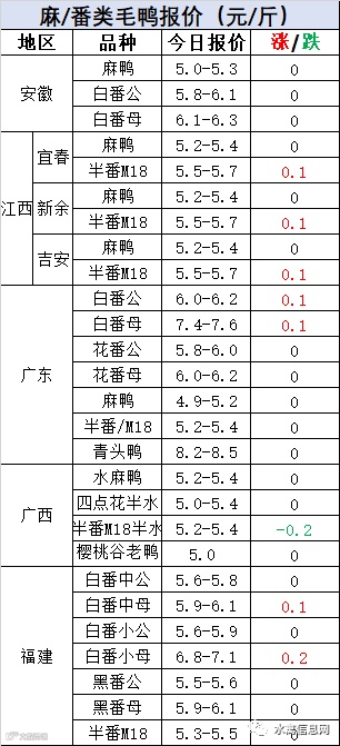 二、2021年1月7日晚至1月8日 麻鸭/半番毛鸭报价