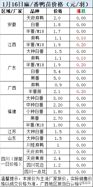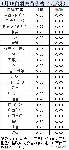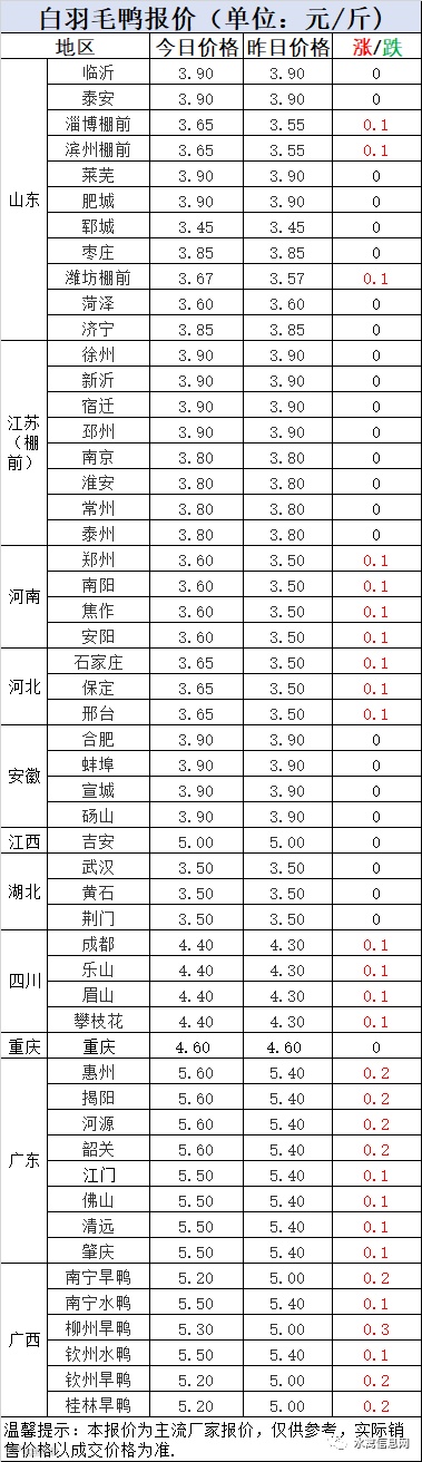 一、2021年1月15日晚至1月16日 白羽肉鸭报价