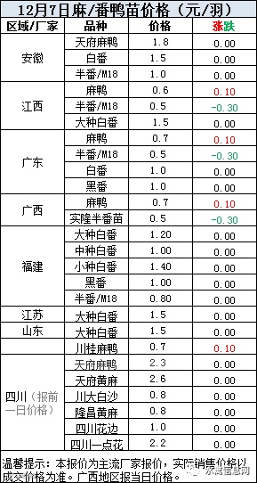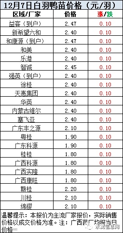 一、12月6日晚至12月7日 白羽肉鸭报价