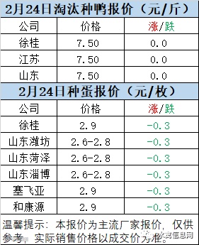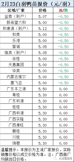 一、2月23日晚至2月24日 白羽肉鸭报价