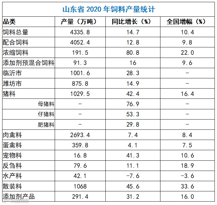 近日,山东省饲料行业协会发布了2020年山东饲料产量的统计数据,饲料总产量4335.8万吨,同比增长14.7%。
