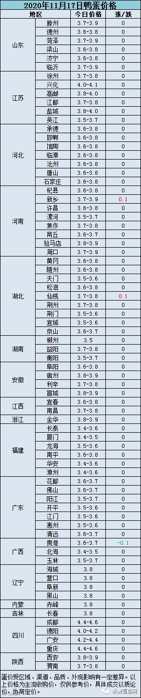 2020年11月17日淘汰蛋鸭价格参考值:活禽7.0-7.5元/斤、屠宰5.8-6.8元/斤。受肉鸭活禽价格下跌影响叠加淘鸭增多种鸭淘汰乱市,淘汰蛋鸭持续弱势震荡,走货较慢。