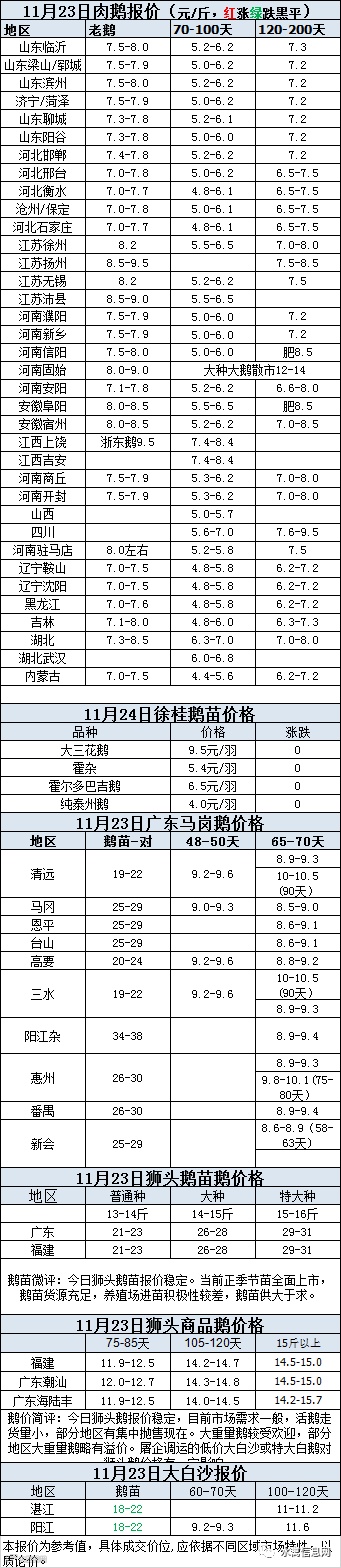 【鹅价快报】2020年11月23日鹅价快报:震荡调整。