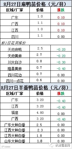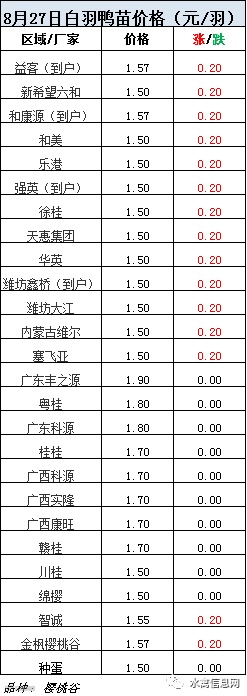 2020年8月27日鸭苗报价;