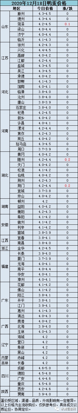 2020年12月18日淘汰蛋鸭价格参考值:活禽6.8-7.0元/斤、屠宰5.5-6.5元/斤。受肉鸭活禽价格下跌影响叠加淘鸭增多种鸭淘汰乱市,淘汰蛋鸭持续弱势震荡,走货较慢。