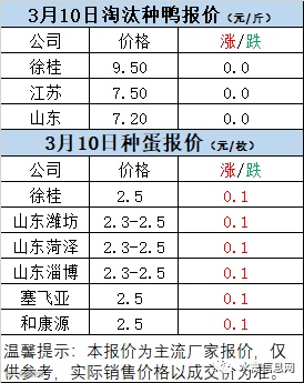 一、3月9日晚至3月10日 白羽肉鸭报价