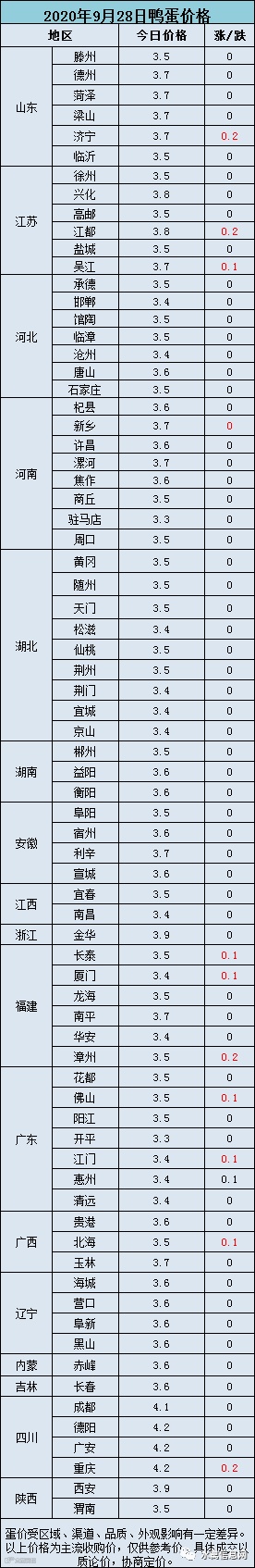 今日鸭蛋市场报价稳定调整。其中低价区均价3.4元/斤,高价区均价3.7元/斤。