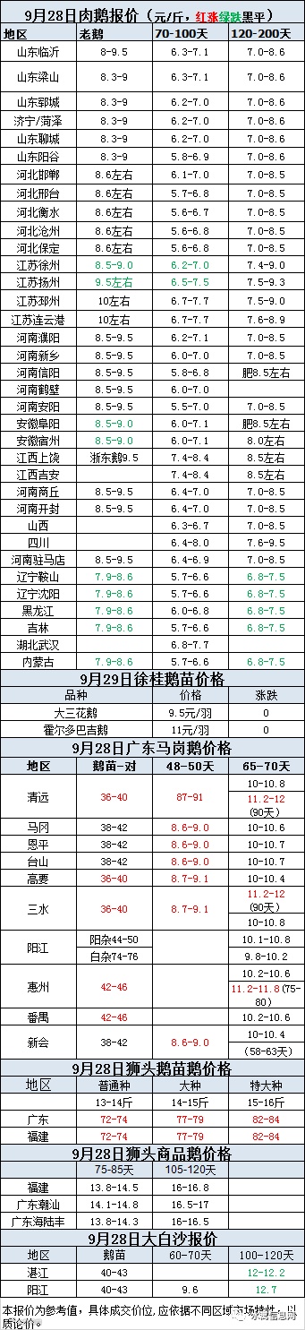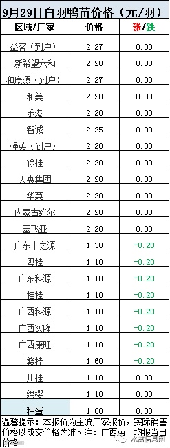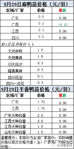 二、9月29日 麻鸭苗、半番鸭苗报价;