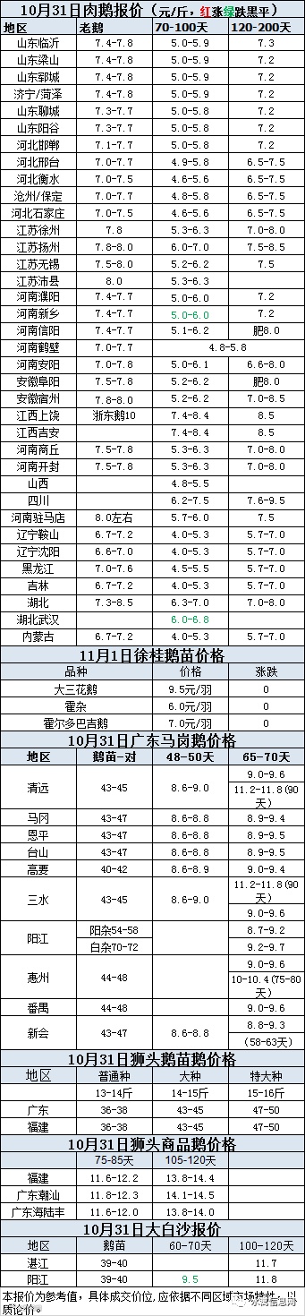 种鹅价格:(下跌趋势)