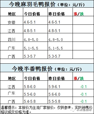 临近八月十五活禽出栏较为集中,今晚麻鸭报价整体稳定,但局部呈弱势。半番鸭类价格弱势,局部下调明显。