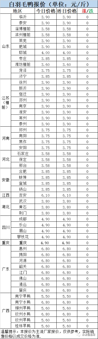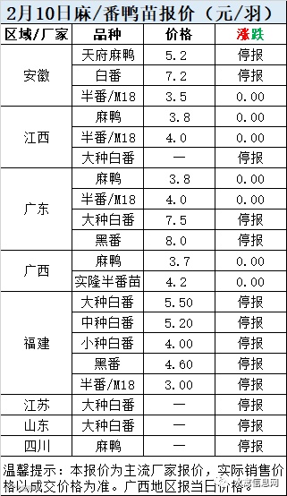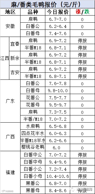 明日:麻鸭报价稳定、半番苗报价稳定。