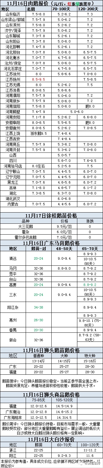 2020年11月16日商品鹅蛋价格(元/斤)