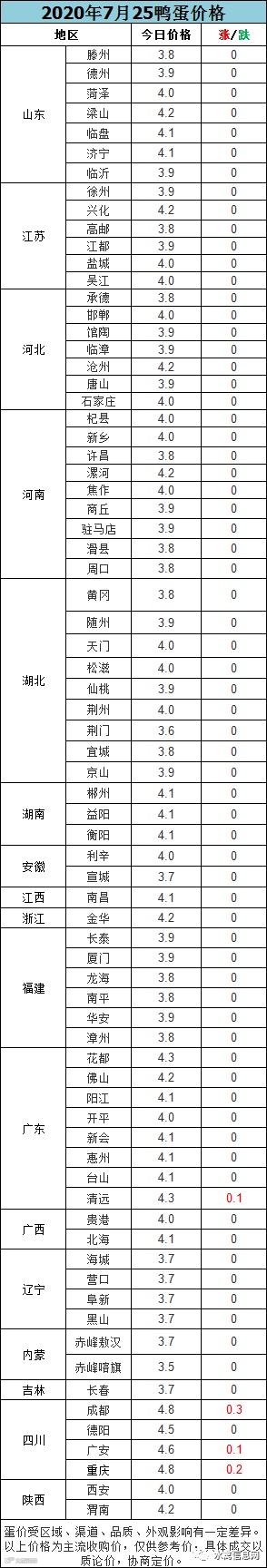 【鸭蛋价格】2020年7月26日鸭蛋报价;稳中上涨,偏强趋势。