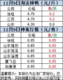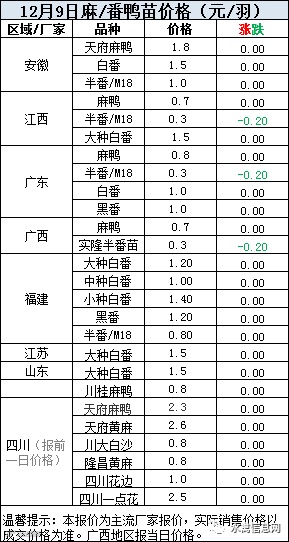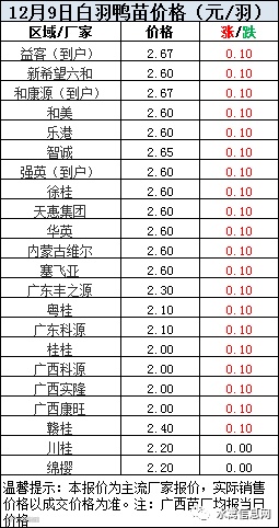 一、2020年12月9日白羽鸭苗报价;