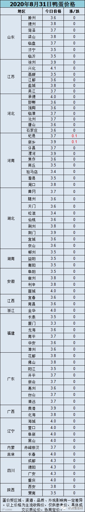 【鸭蛋报价】2020年8月31日鸭蛋报价,稳定调整,局部追涨。