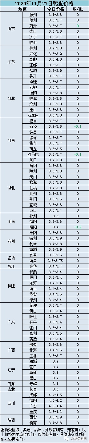 2020年11月27日淘汰蛋鸭价格参考值:活禽6.5-7.0元/斤、屠宰6.0-6.7元/斤。受肉鸭活禽价格下跌影响叠加淘鸭增多种鸭淘汰乱市,淘汰蛋鸭持续弱势震荡,走货较慢。