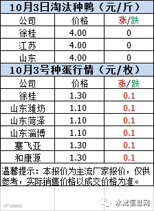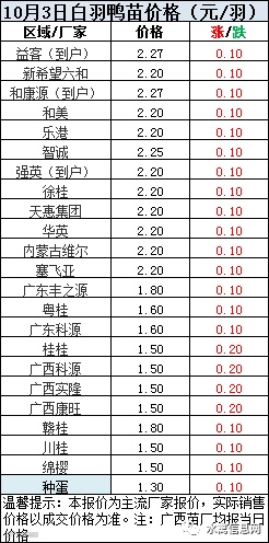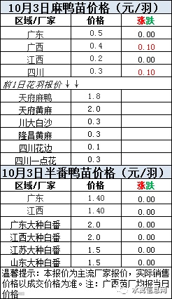 一、2020年10月3日白羽鸭苗报价;