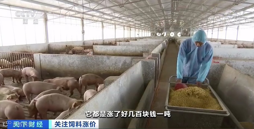 江西省赣州市养猪户 赖冬孜:这一段时间不断上升,尤其是玉米跟豆粕,一吨涨了好几百元。现在玉米每吨两千六七百元,豆粕便宜的时候,是每吨两千元多一点,现在每吨将近三千元。