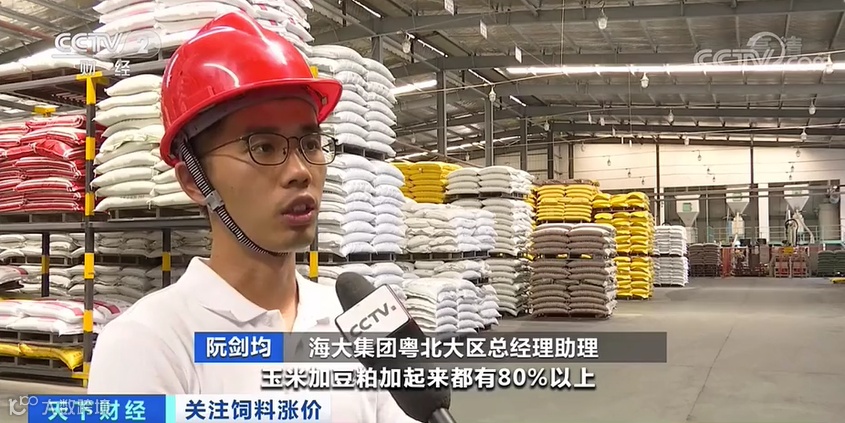 海大集团粤北大区总经理助理 阮剑均:拿猪料来看,玉米加豆粕有80%以上,单吨的猪料每吨至少影响180元以上。禽料替代原料相对多一点。鸡料这一块,玉米一吨会影响到150元,鸭料再保守每吨也有100元以上。
