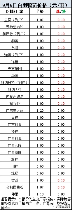 行情简析:明日樱桃谷鸭苗报价,北方继续试探上调0.1元/羽,南方麻鸭半番先行保涨试探,白苗继续报稳观望。