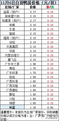 一、2020年11月6日白羽鸭苗报价;