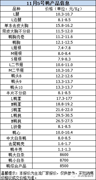 一、11月5日晚至6日 白羽肉鸭报价