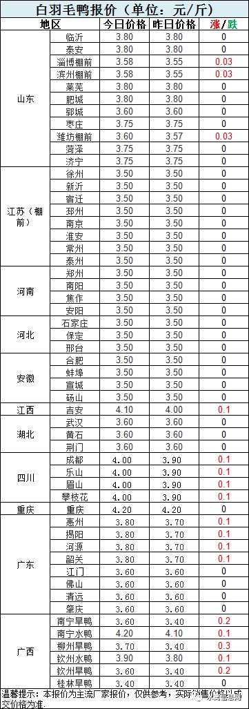 2:南方活禽区域今晚报价继续上升为主。广东、广西白鸭今晚普遍上调报价,养殖端略有缓解。四川报价小幅追涨。