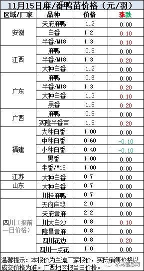 淘鸭行情:淘汰种鸭逐步减少,近期随着种蛋鸭苗的抬升,报价不断反弹。