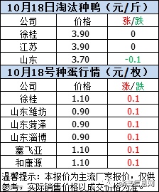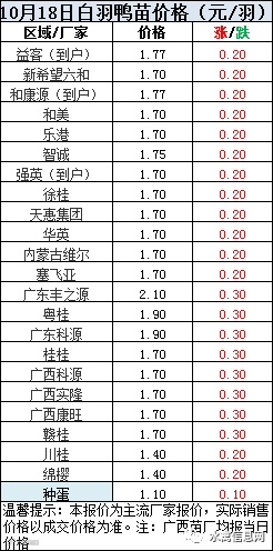 一、2020年10月18日白羽鸭苗报价;
