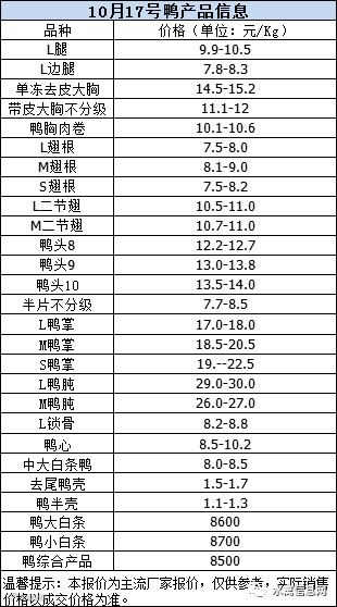 一、10月17日晚至18日 白羽肉鸭报价