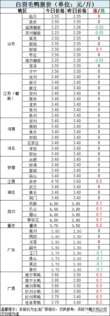 明日白鸭苗报价触底反弹,上涨0.2-0.3元/羽不等。