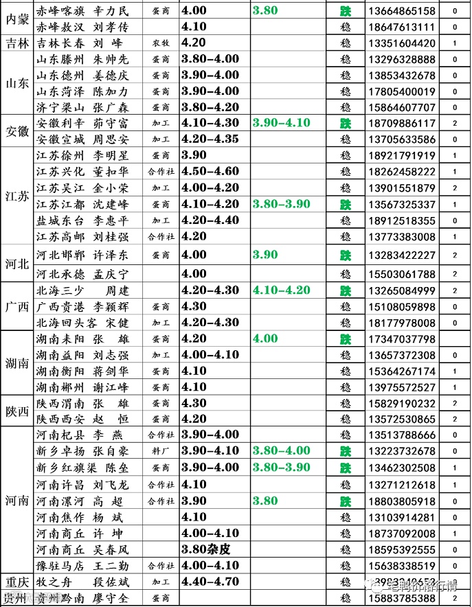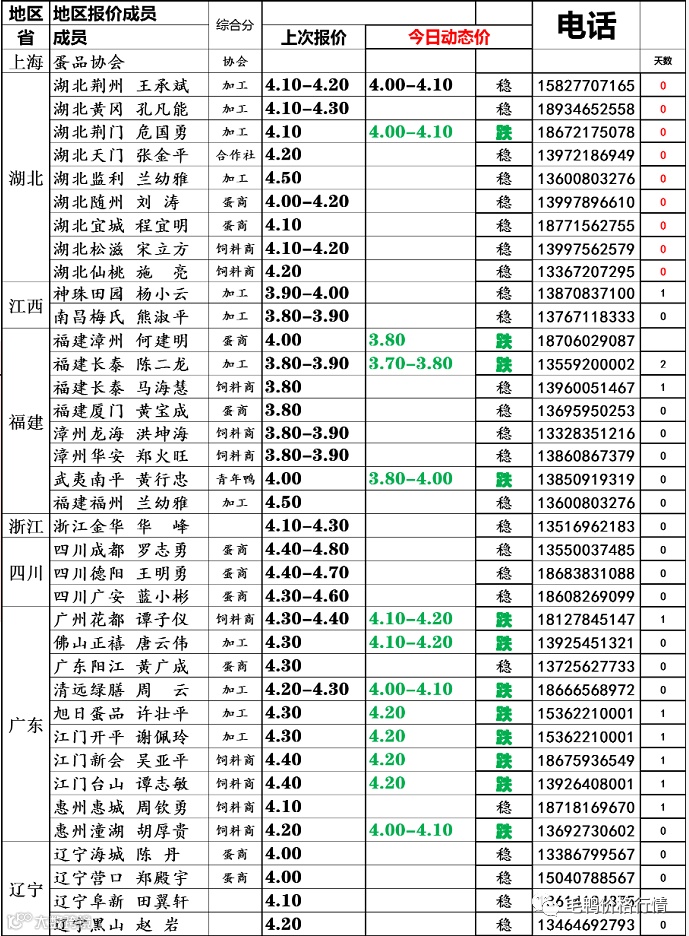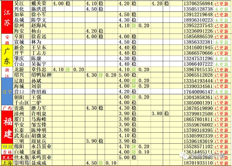 | 鸭蛋 | 辽宁省 | 4.19 | 0.00 |