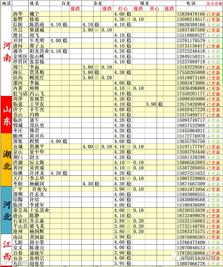 | 鸭蛋 | 广西 | 4.30 | 0.00 |