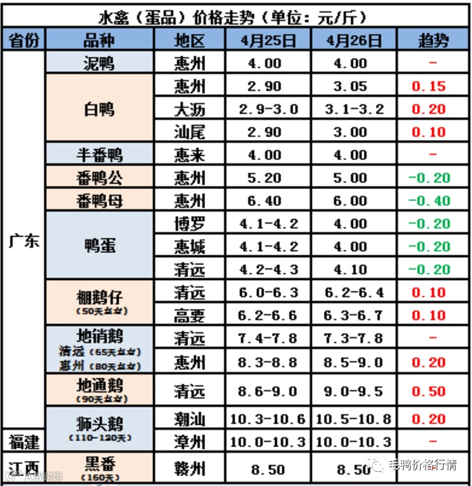 备注:2020年4月25日淘汰鸭价格:约8.5元/斤(参考值)
