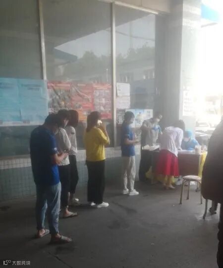 图为市场商户们正在排队等待做核酸检测