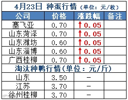 2020年4月23日白羽种蛋价格