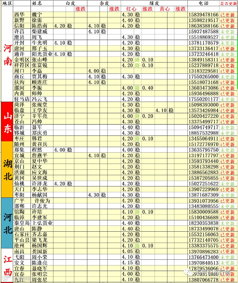 | 鸭蛋 | 广西 | 4.30 | 0.00 |