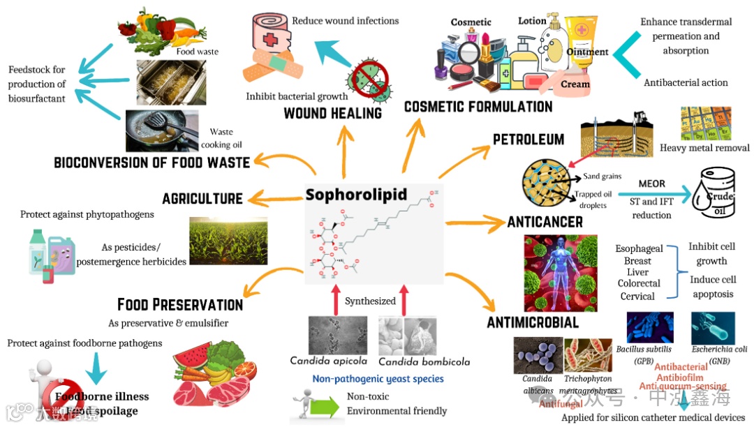 通过不断的筛选,鑫百威摒弃了常规的化学表面活性剂,选择了用途广泛的生物表面活性剂——槐糖脂,它能够在温度、pH及盐度处于极端状况下使用,并且无毒可生物降解。其具有优良的金属螯合能力,可以清除水体中的重金属污染,还可以生物降解水中的COD,并且能够通透水体,降低水体粘度,除此以外,它能够激活水中微量元素的释放,稳定藻类和水草的生长。