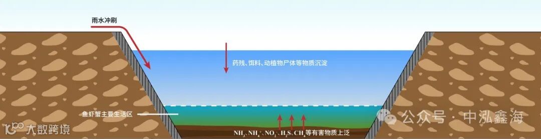 (3)养殖过程中饲料、排泄物太多,在分解过程中,产生一系列的中间和最终产物,包括氨氮、亚盐和硫化氢等。