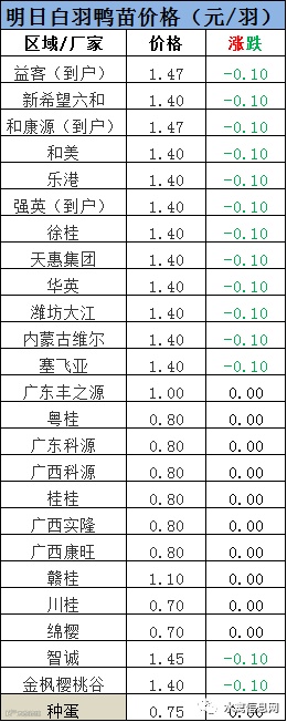 行业相关:种蛋、淘汰鸭、冻品价格汇总