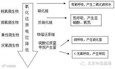 随着底泥中氧化还原电位的降低,各种微生物活性也随之发生改变。随着底泥深度增加,依次存活的微生物种类为好氧微生物、微氧微生物、兼性微生物、厌氧微生物。相应表现在氮循环上,则先是氨化细菌与硝化细菌进行有氧呼吸,产生氨氮、亚硝酸盐,